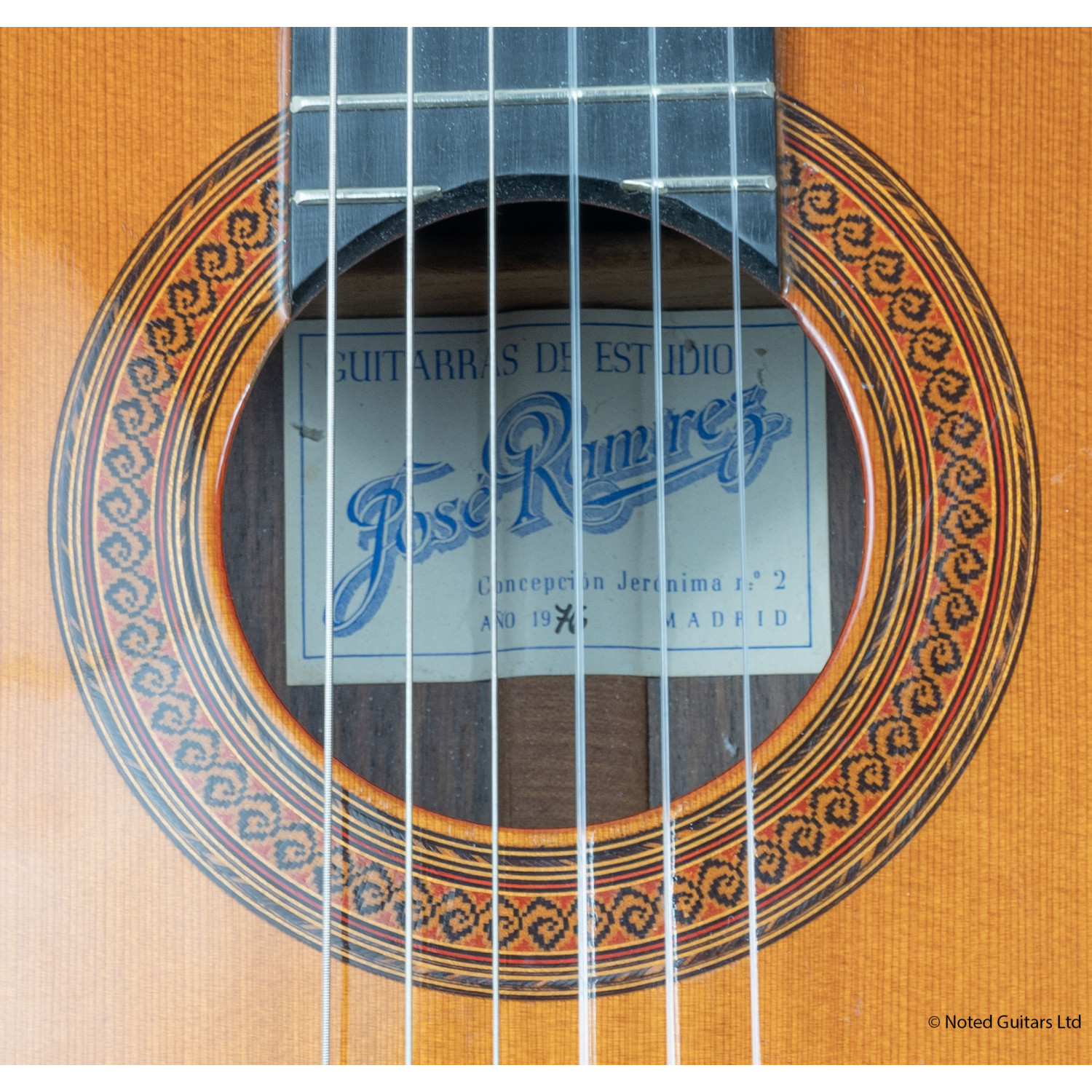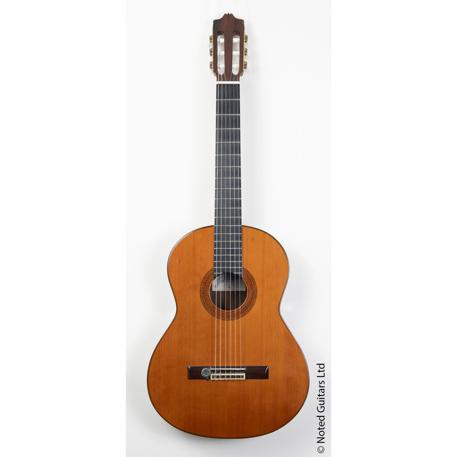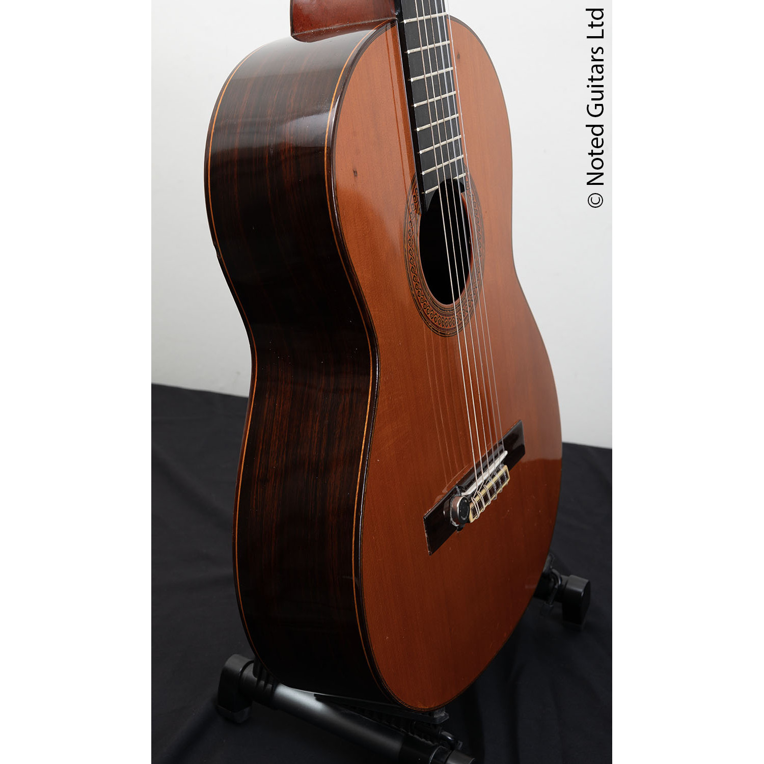 This guitar is a 1976 example of their Estudio model, aimed at advanced students of the instrument. It has a solid cedar soundboard, rosewood back and sides, a mahogany neck and ebony fingerboard.